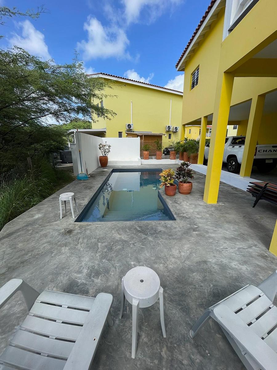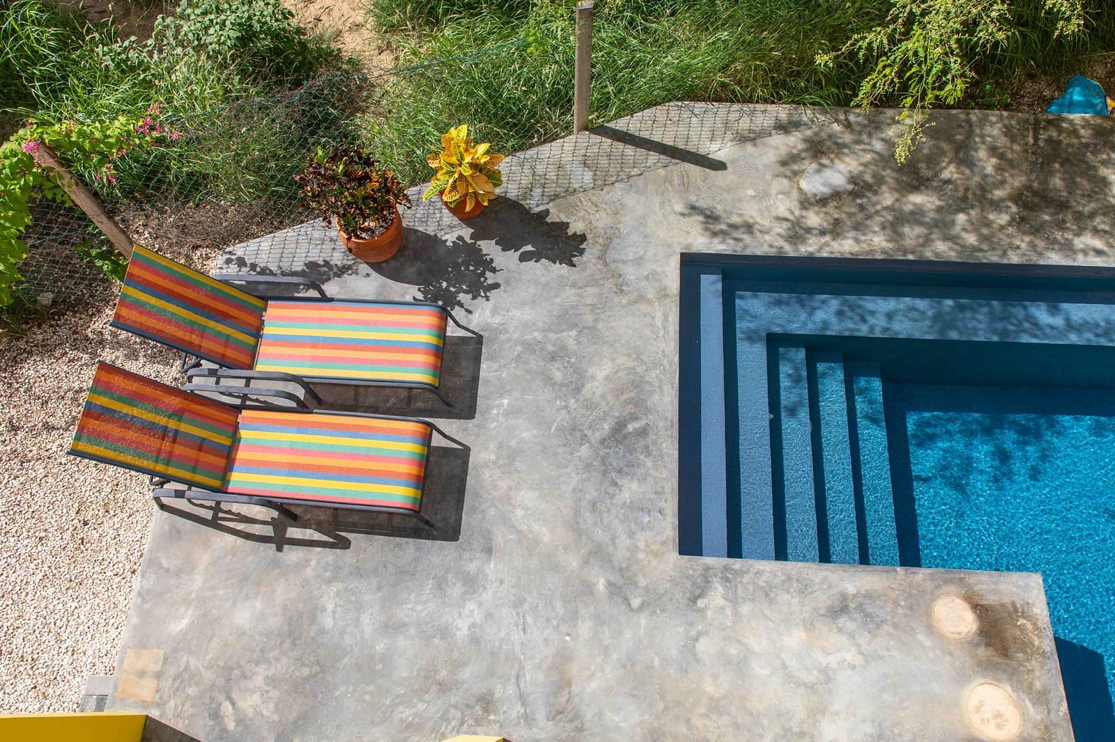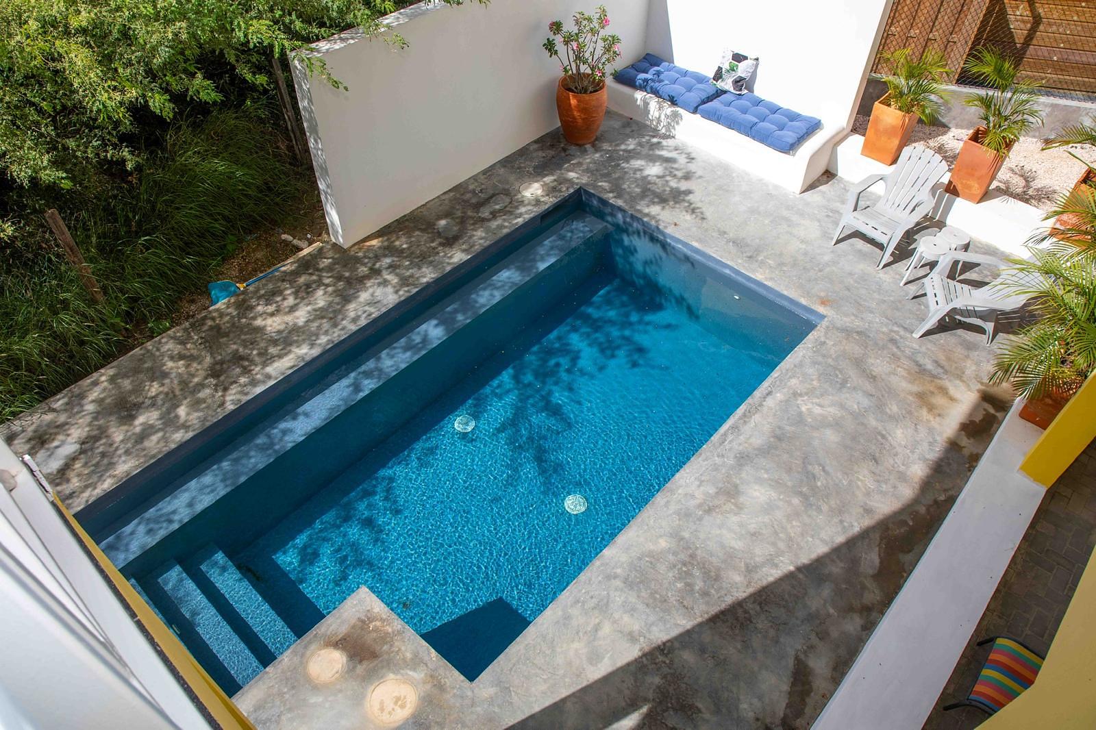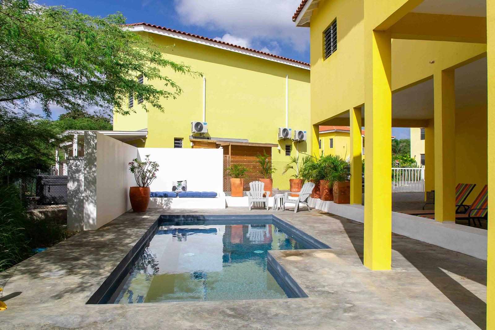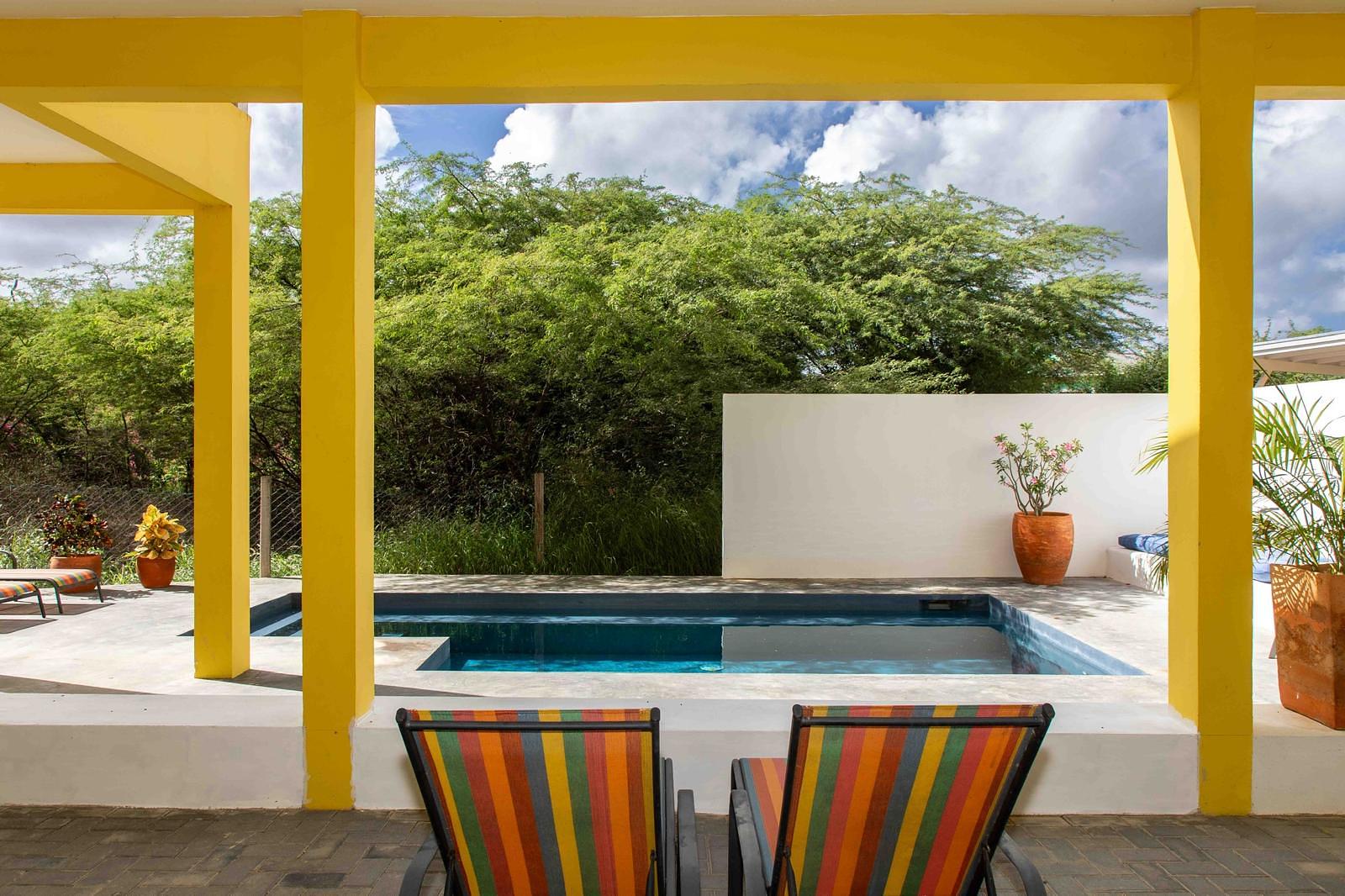 Outside, the villa really opens up. A large fenced garden offers plenty of space for kids to play and for quiet mornings or sunset evenings by the pool!