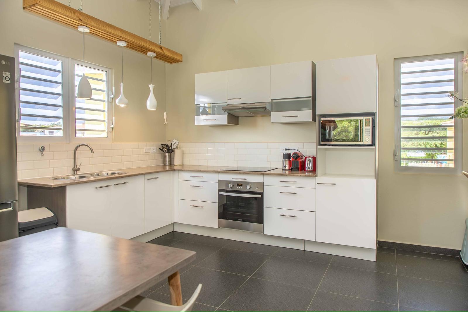Upstairs, the home opens into a spacious living area positioned on the wind, designed to catch the breeze and keep things comfortable. On this level there are also 2 additional bedrooms and a second bathroom. All bedrooms have air conditioning.